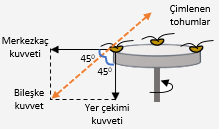 -Üzerinde çimlenmekte olan tohumların bulunduğu düzenek, yer çekimi ile merkez kaç kuvveti eşit olacak şekilde bir süre döndürüldüğünde; kök bileşke kuvveti yönünde, gövde ise kökün tersi yönde yönelir. |
