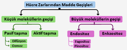 -Hücre zarından madde geçişlerini taşınan maddelerin büyüklüğüne