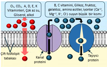 göre çoktan aza doğrudan fosfolipit tabakası arasından geçebildiği gibi taşıyıcı