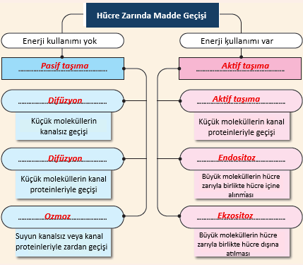 -Pasif taşımanın difüzyon ve ozmoz olmak üzere iki