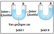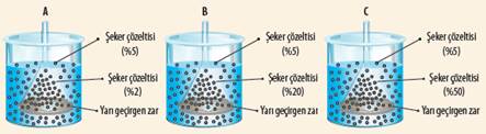 konulan çözeltinin şeker derişimi, A koluna konulan çözeltinin şeker