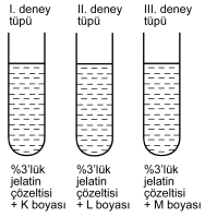 deney tüpüne K, II. deney tüpüne L ve III. deney tüpüne M boyaları eşit
