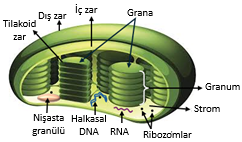 18. Aşağıda bir bitki hücresindeki mitokondri ile kloroplast