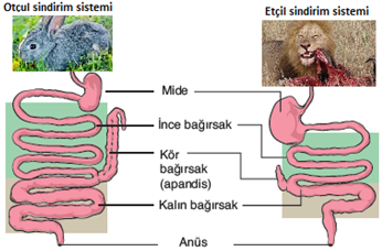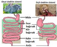 etçil iki hayvanın sindirim kanalı karşılaştırması görsel olarak verilmiştir.