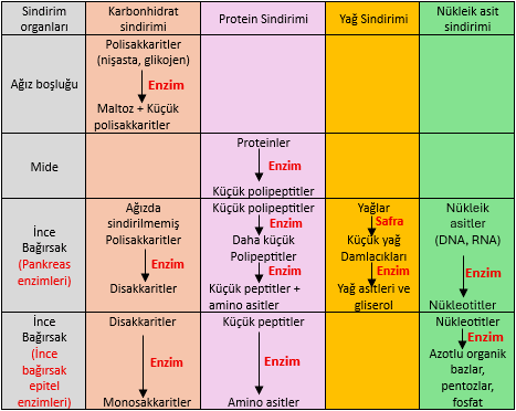 sindirim hidroliz tepkimeleriyle gerçekleşir.