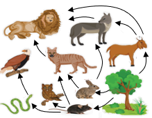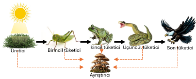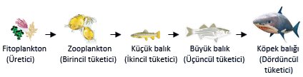 diğerinin besinini oluşturduğunu gösteren bağlantı oklarıyla ifade