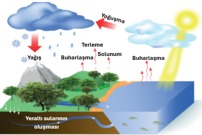 canlılardan terleme ve solunum yoluyla buharlaşan su da atmosfere geçer