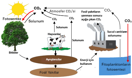 kaynaklarıdır. Fosil yakıtlar kullanıldığında ise yoğun olarak atmosfere CO2