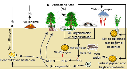 tekrar atmosferin serbest azotuna dönüştürülerek atmosfere verilir. Bu olaya denitrifikasyon