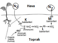 6. K’nın serbest azotu bağladığı, L’nin nitriti nitrata