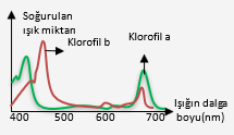 ışığı soğurur. En fazla mavi-mor sonra da kırmızıyı en fazla soğurur.