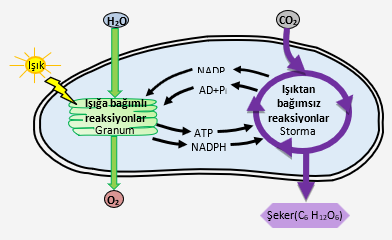 reaksiyonlar ve ışıktan bağımsız (Kalvin döngüsü) reaksiyonlar arasındaki