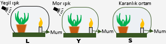 7. Aynı türe ait üç özdeş saksı bitkisi L, Y ve S harfleri gösterilen üç farklı ortama konuluyor.